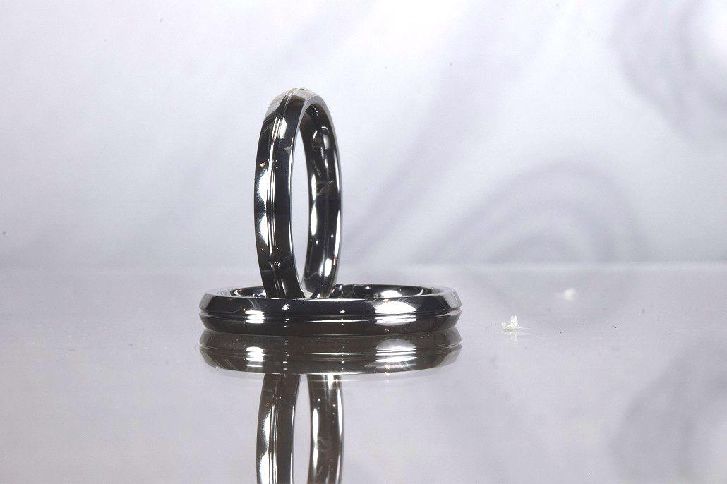 その分、仕上がったタンタルリングの美しい黒の色合いは、黒いプラチナと言える、レアメタルならではの魅力にあふれています。