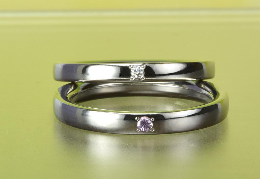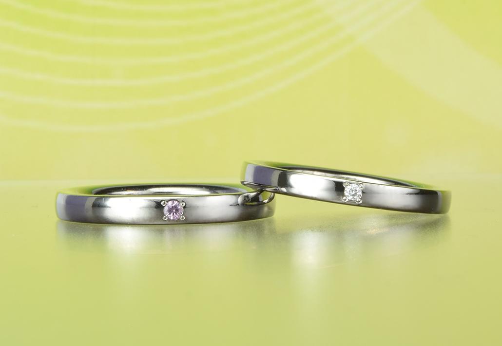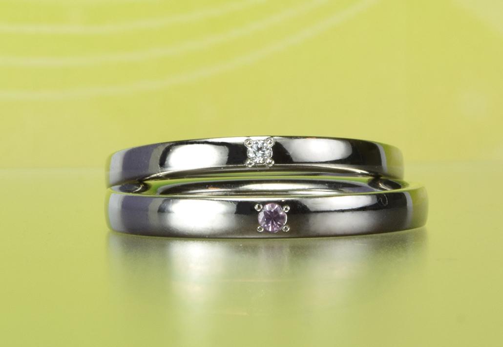 【使用石】メンズ:ダイヤモンド×1 レディース:ピンクサファイア×1