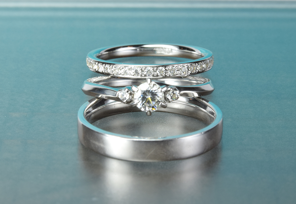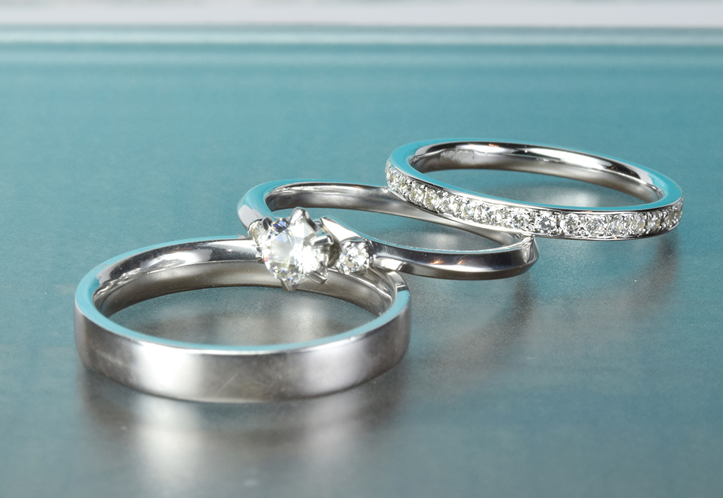 〇リングの表面とリングの内側にお二人の誕生石やダイヤモンドの追加が可能です。