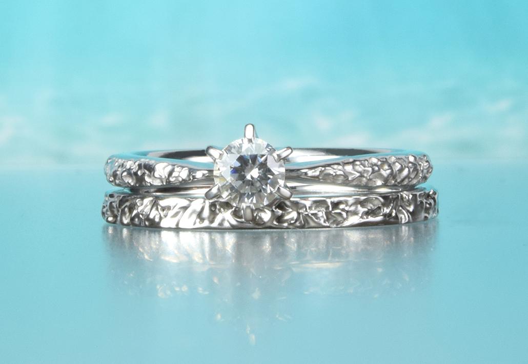 創業以来20年以上続く人気No1のテクスチュア<アース>柄を施した手作業で製作するオリジナルの婚約指輪&結婚指輪です。