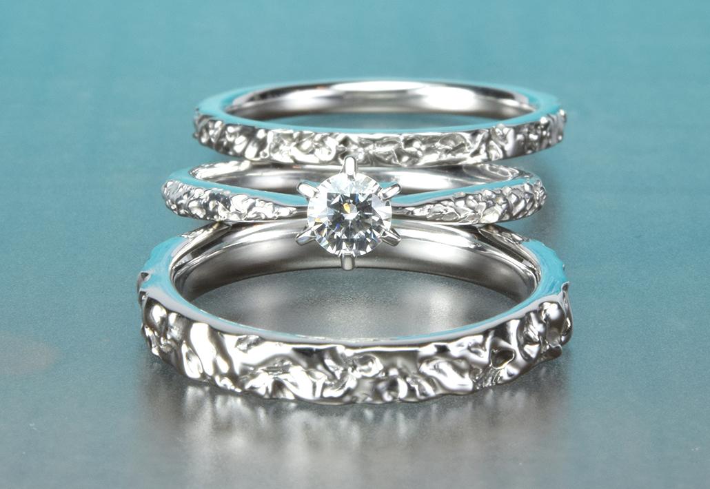 婚約指輪&結婚指輪セット|¥273,600~クラフト感のアース柄3点セット TS-001