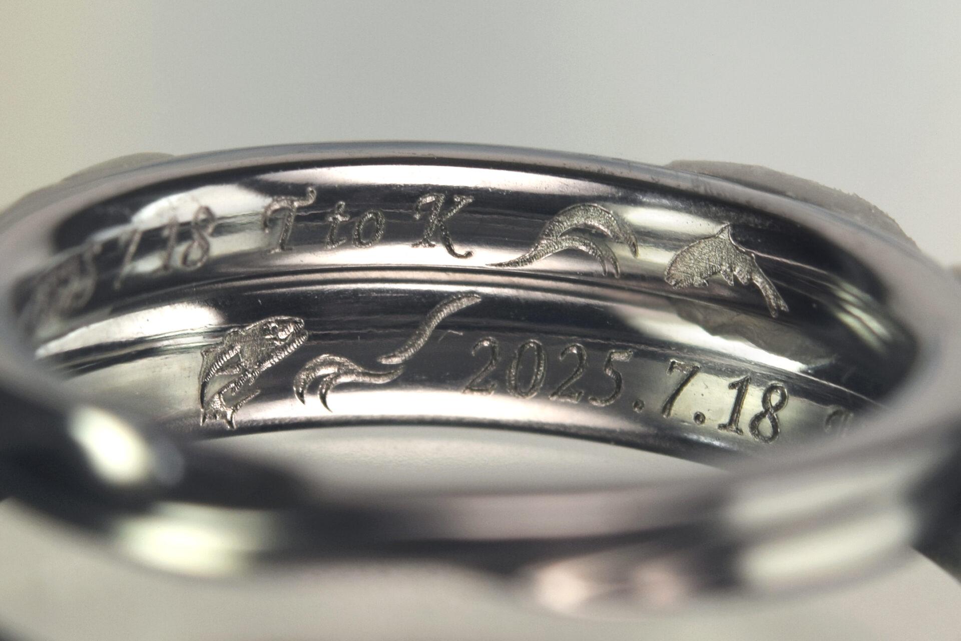 タンタル結婚指輪|釣りが好きなんですが「ひらまさ」を指輪に刻印出来ますか?20代後半カップルのご来店!<OR-1976>