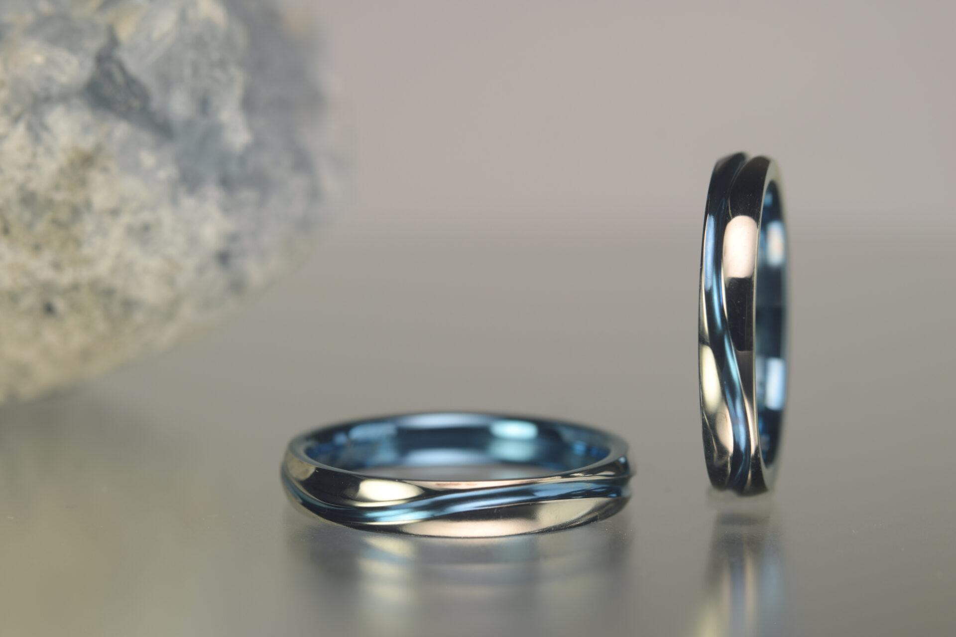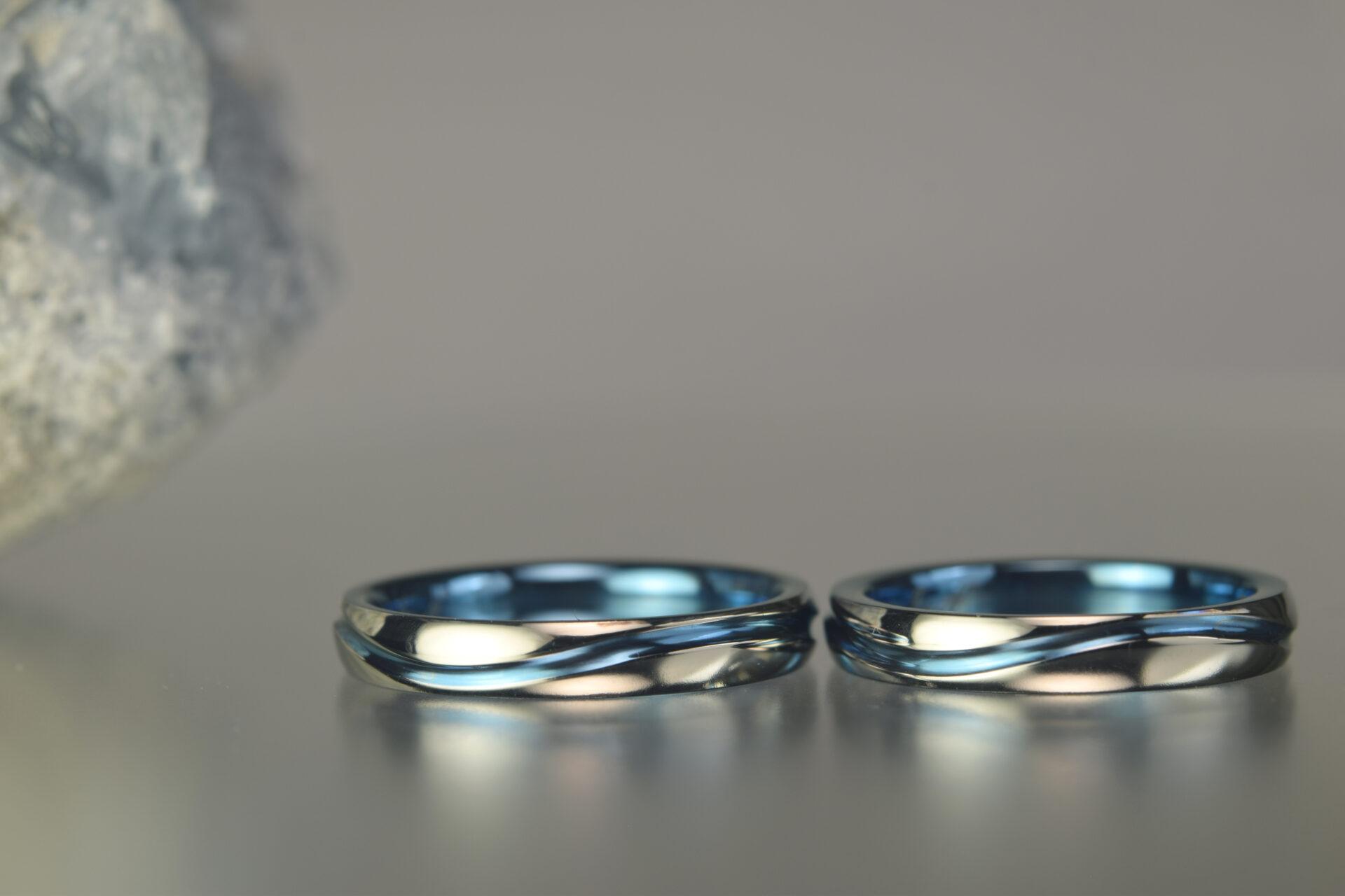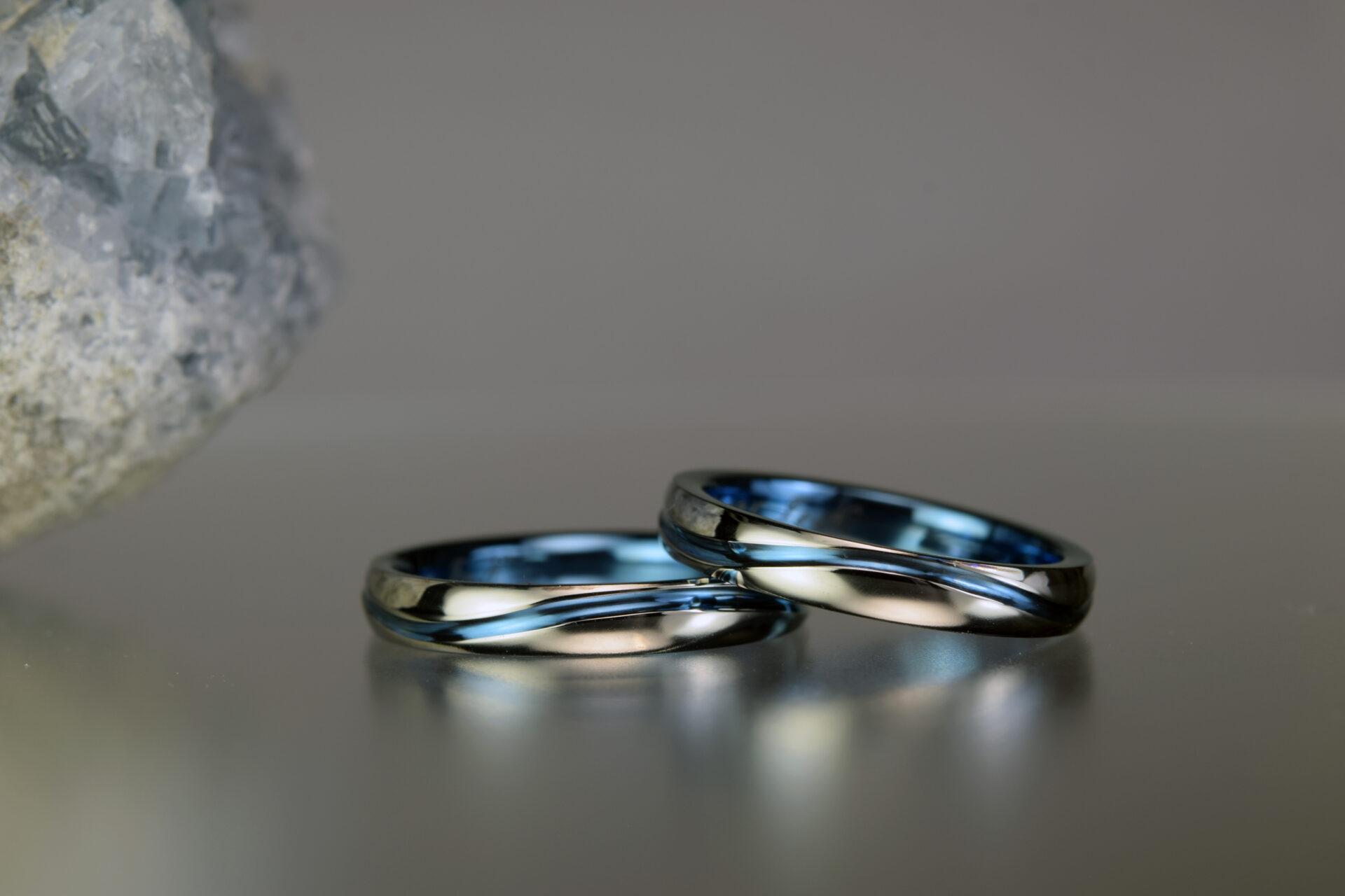 ジルコニウム結婚指輪|青い指輪を探して、まずは彼女がご来店。オーストラリアに住む彼とリモートで結婚指輪の打ち合わせを致しました。<OR-1992>