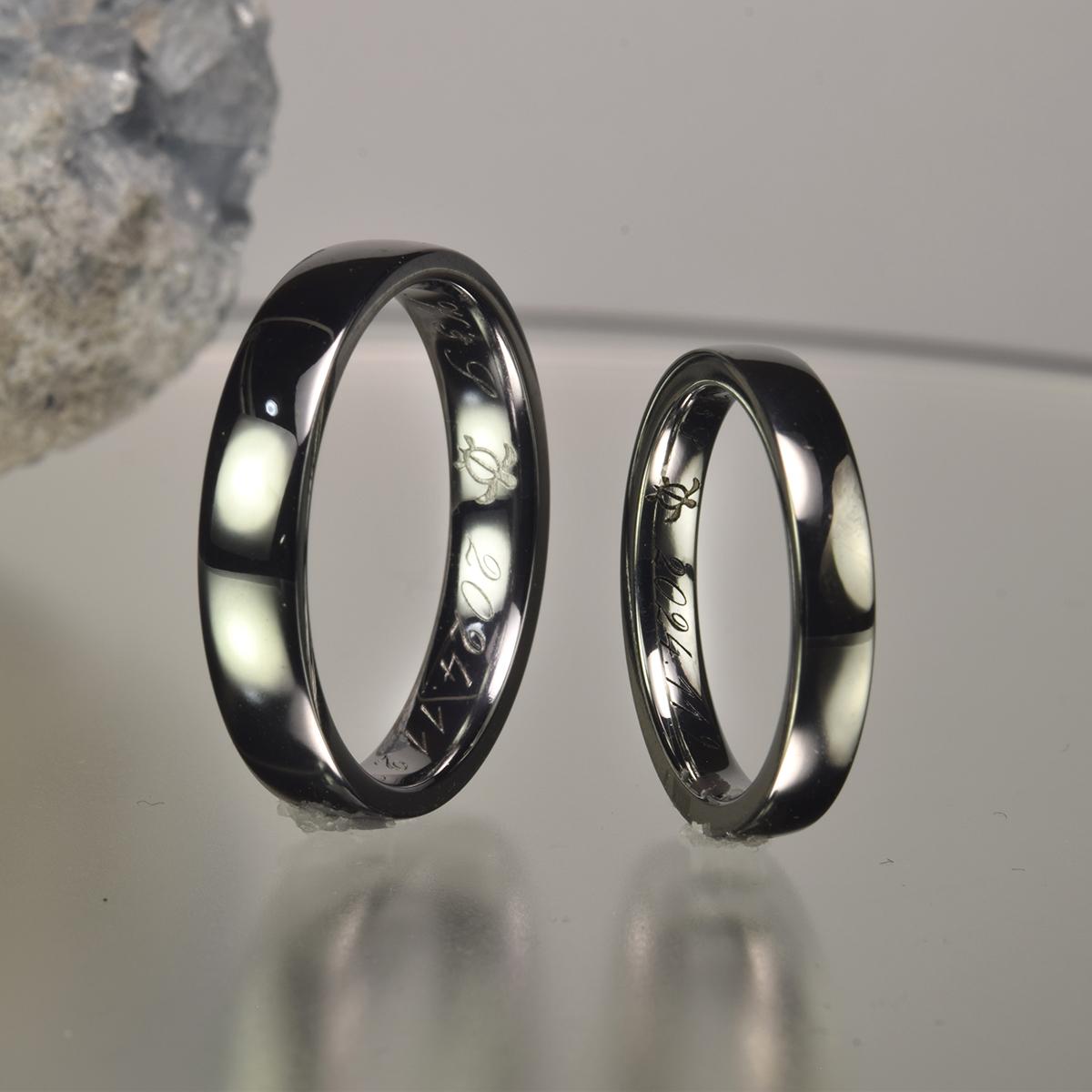 メンズにはタンタル、レディースにはハフニウムを使用した、