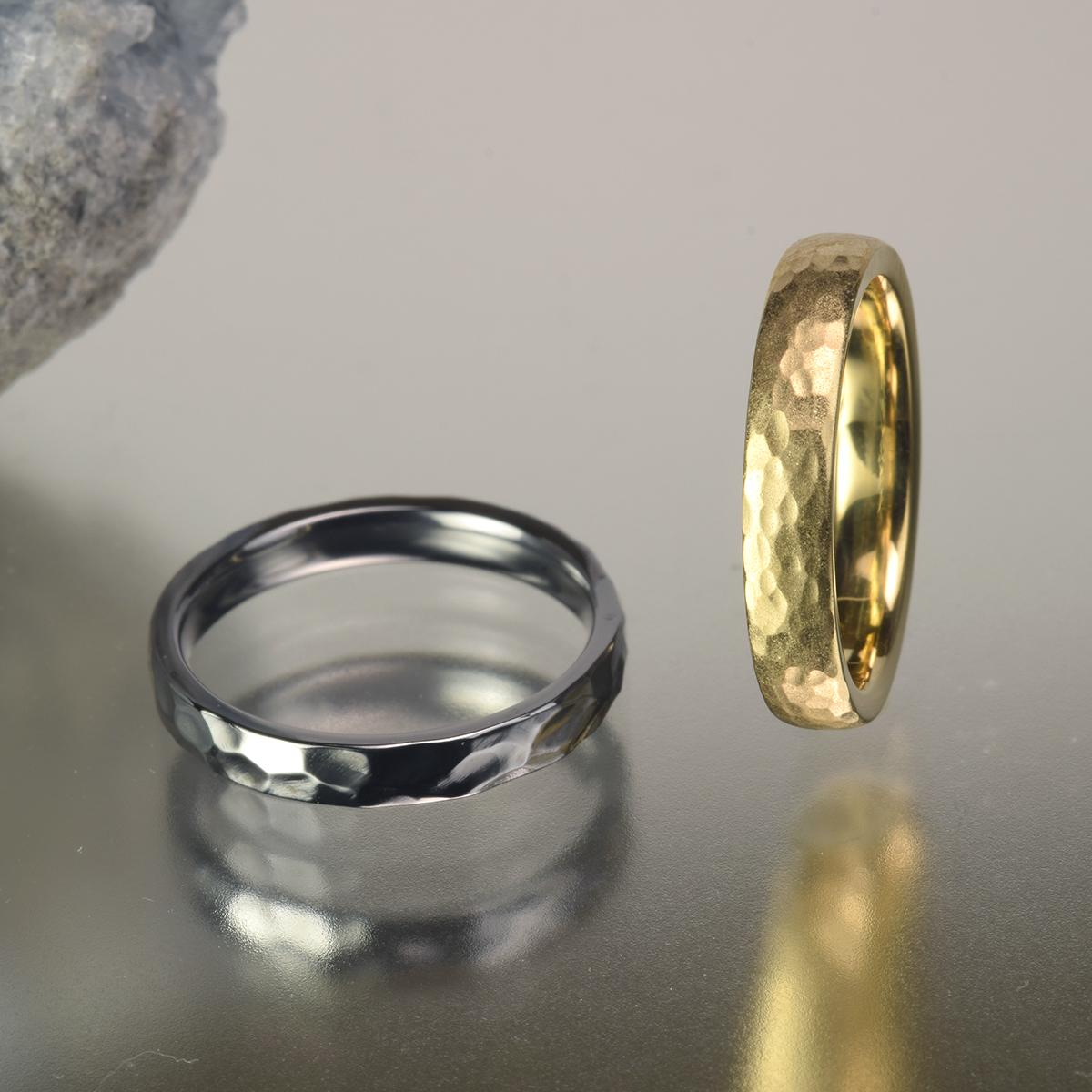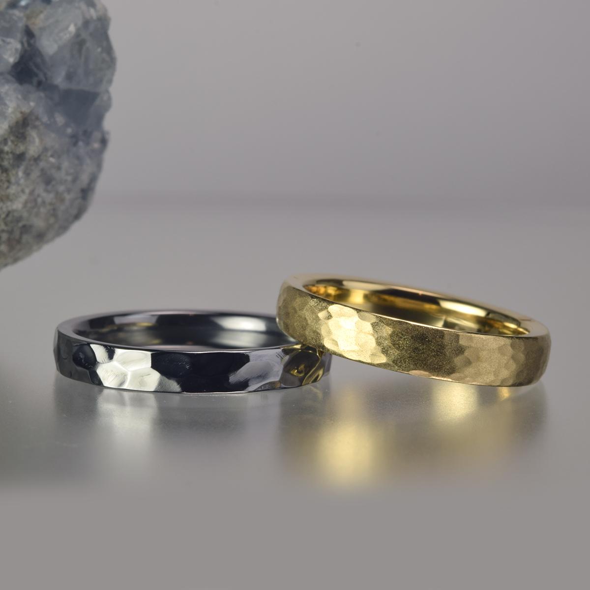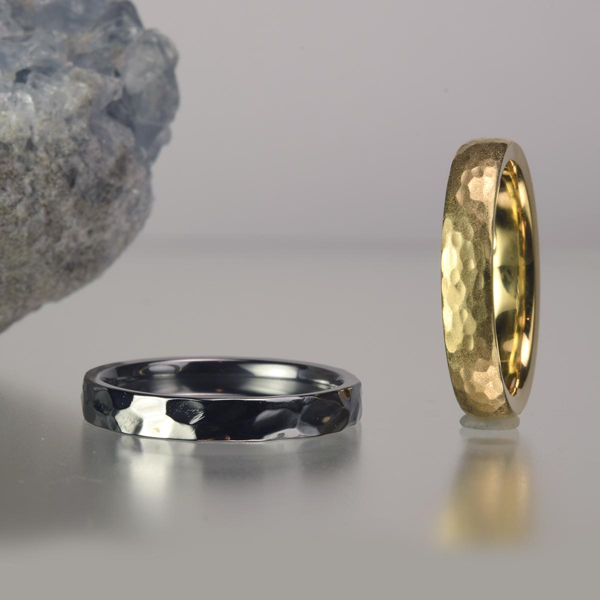 この技法によって生まれる独特の凹凸と光の反射が、リングに深みと温かみを与えます。