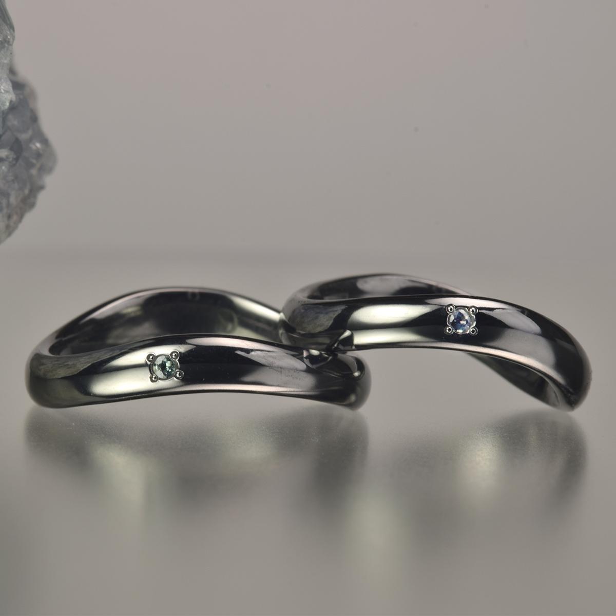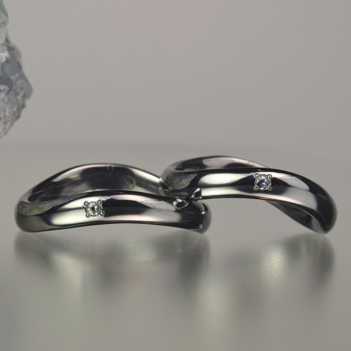 【黒く輝くタンタル素材の波打つ結婚指輪】