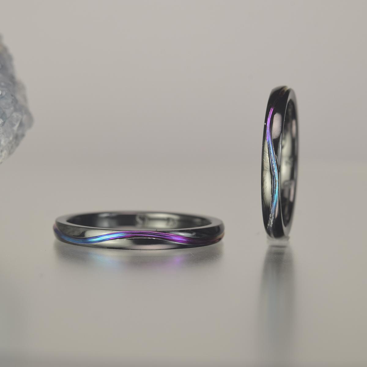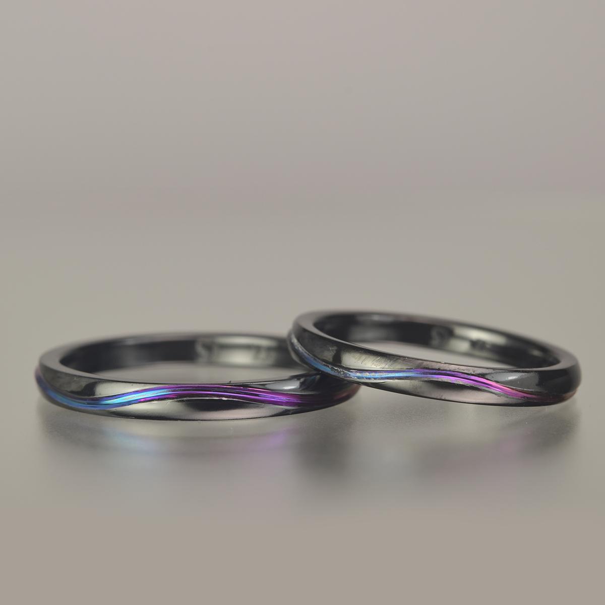 ブラックジルコニウム結婚指輪|黒とカラーリングが融合されたリング