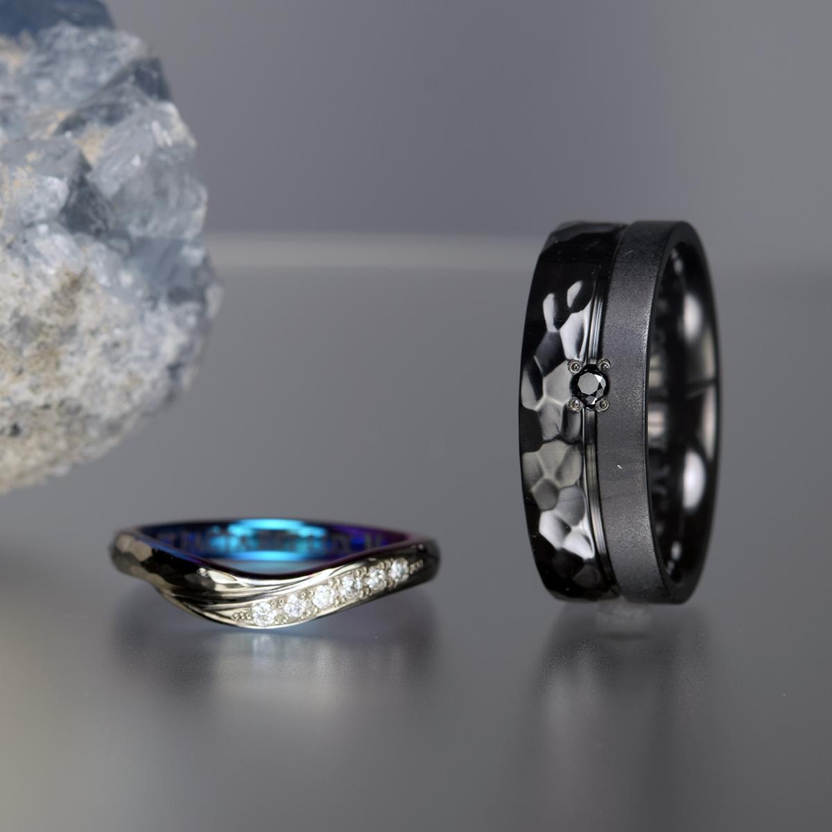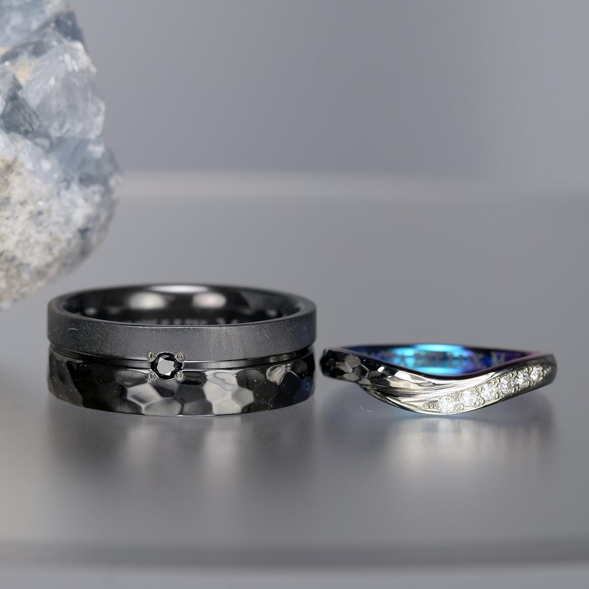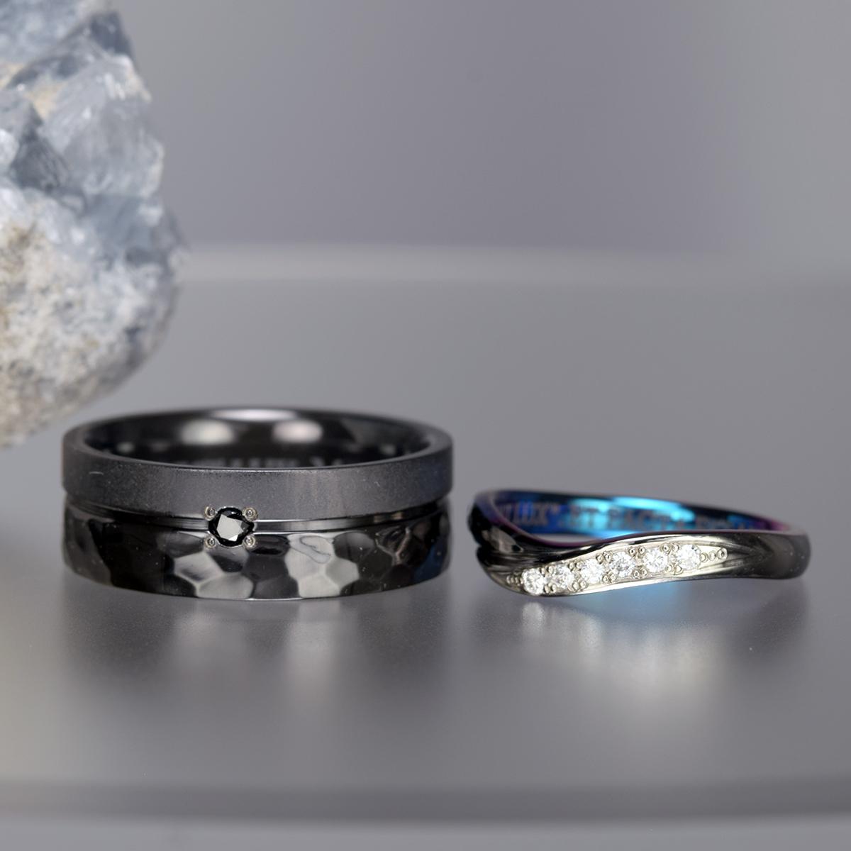 ブラックジルコニウム結婚指輪|オーダーメイド|職人手作り唯一無二デザイン【OR-1999】