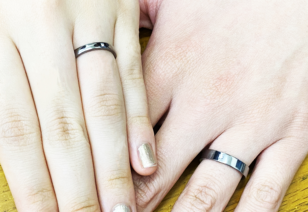 金属アレルギーを持つ彼女の為に一生安心で付けれるタンタルの結婚指輪