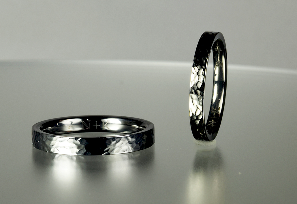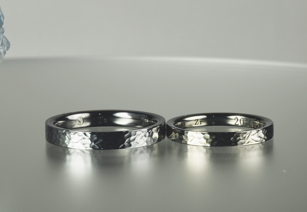 タンタル&ジルコニウム クラフト感あるデザインの結婚指輪|素材は違うけど同じデザインにしました。OR-1830
