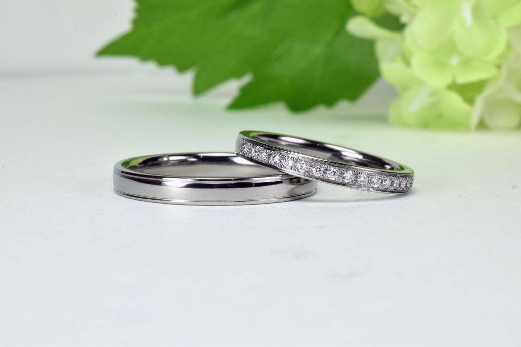金属アレルギー対応のハフニウムのエタニティー結婚指輪|広島から福岡までご来店頂きました。【O-MA-349】