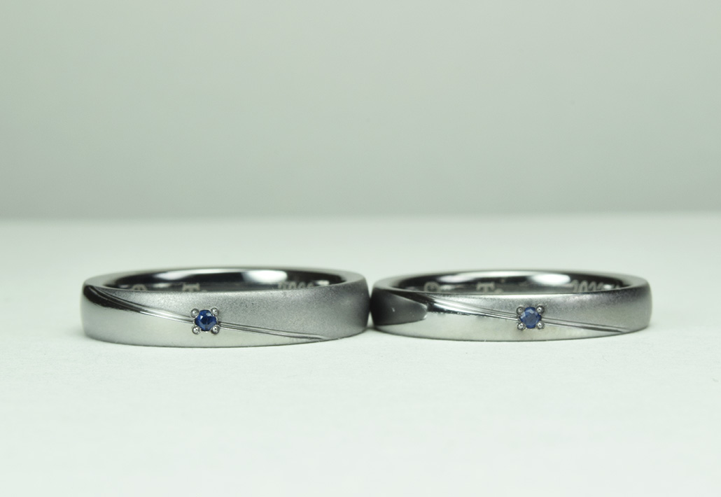金属アレルギー対応&誕生石を入れたタンタル結婚指輪が完成しました。O-MA-352
