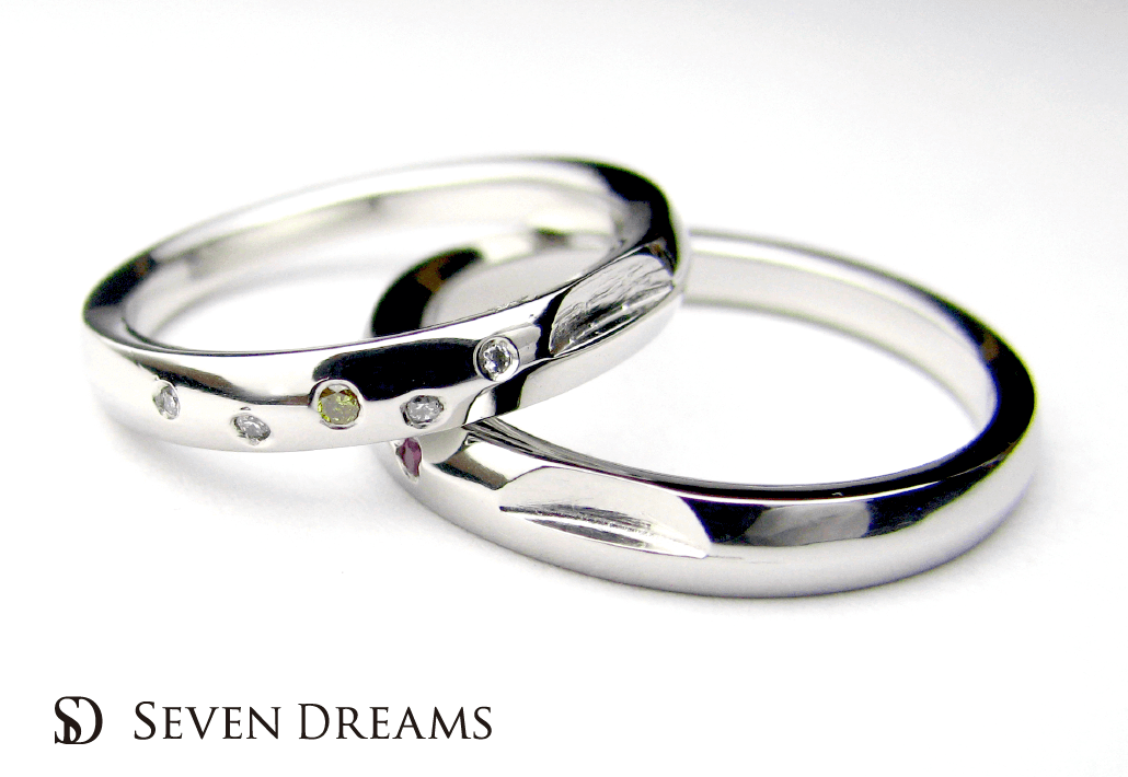 2つの指輪の数字を合わせると<インフィニ∞>のデザインが浮かび上がるストーリーあるデザイン。一見シンプルで主張しすぎない感じもポイント高いですね。離れた時でもいつも一緒にいる事を感じられるのが嬉しい一体感あるデザインです。