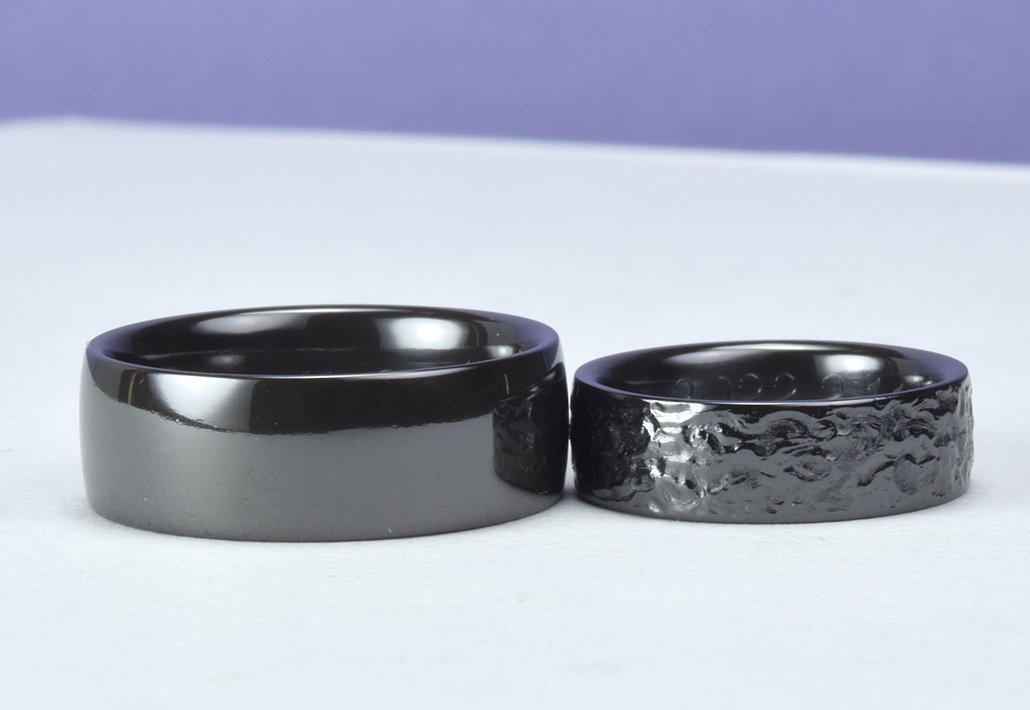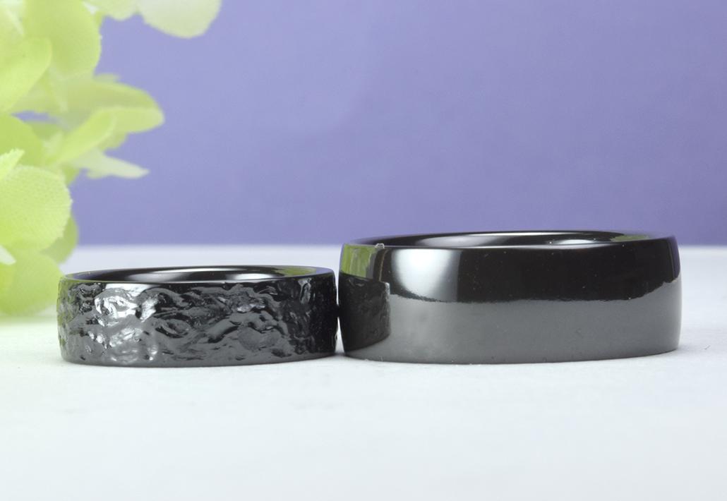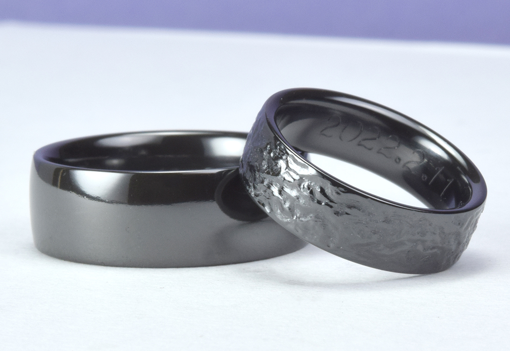 「やっぱり、タンタルではなくこちらの真っ黒いジルコニウムのブラックの結婚指輪で決めたいです。 あとは指輪の幅と指輪に入れる柄を選ぼうと思います。」 はきはきとした感じで短時間でご希望の結婚指輪に到達致しました。
