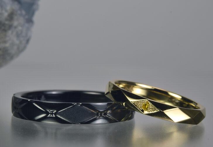 黒い結婚指輪|アーガイル<古代から続く縁起柄の菱形>ダイ...