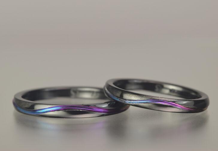 最新|ブラックジルコニウム結婚指輪|黒と虹色のコンビネー...