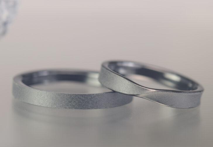 ブラックジルコニウム結婚指輪|波打つ水面のような輝きと軽...