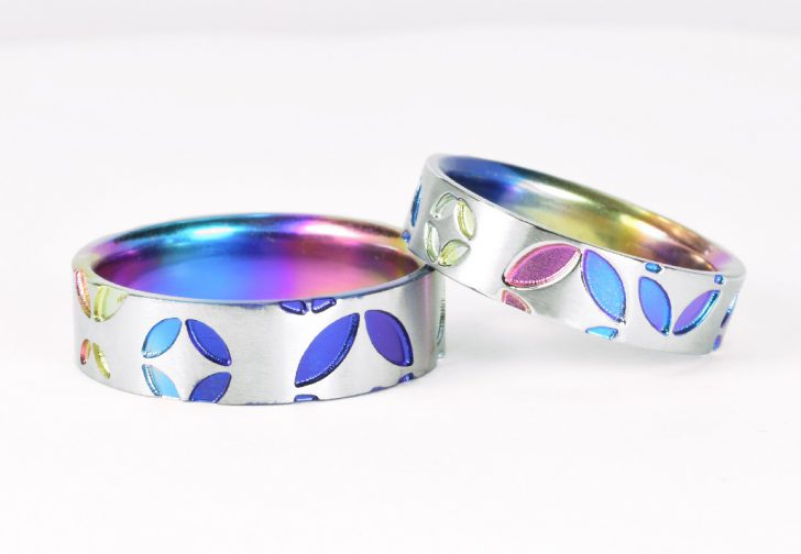 【カラーリング結婚指輪】七宝紋に七色を発色した指輪が人気...