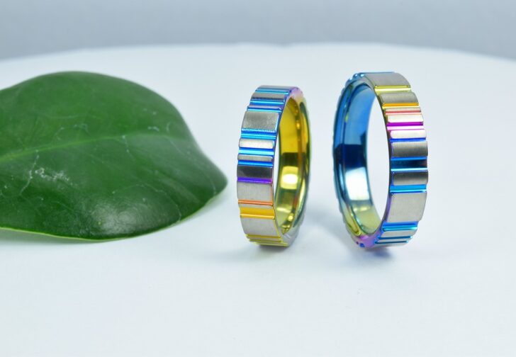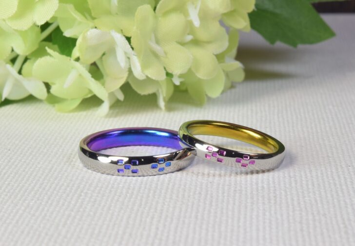 青と紫のグラデーションのジルコニウム結婚指輪 人と違うリ...