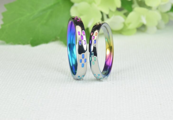 青と紫のチタン結婚指輪|一目ぼれでした。とラインからお問...