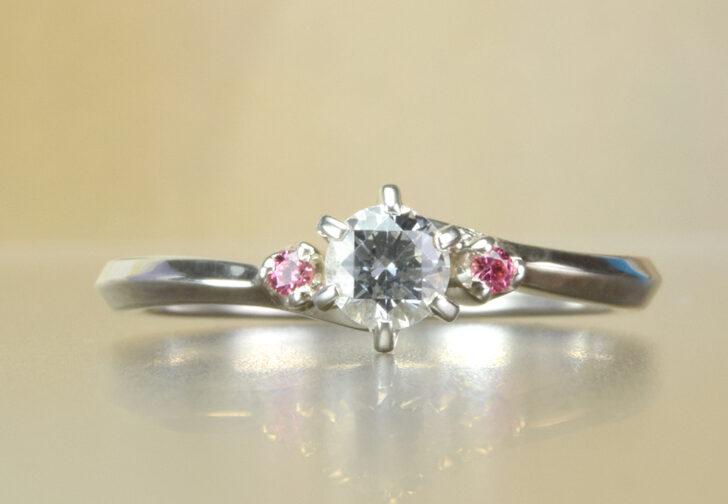プラチナ婚約指輪|ツイストアームにピンクが映えるサクラ&...