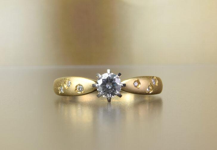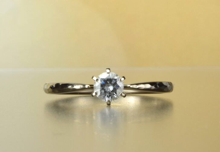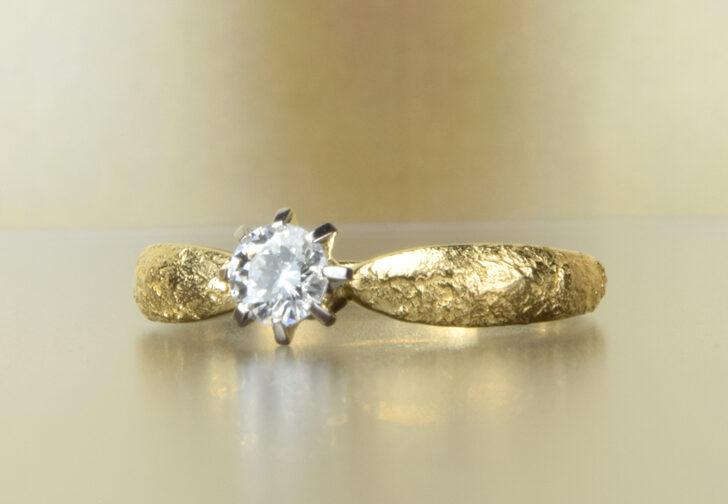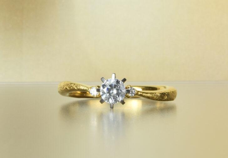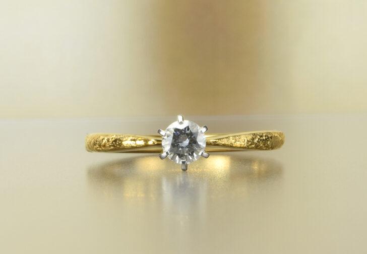 K18シャンパンゴールド婚約指輪|シックな色合いが槌目ア...