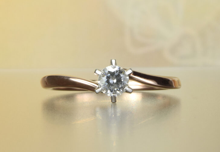 K18枠&プラチナ石座の婚約指輪|カーブがキュートなゴー...