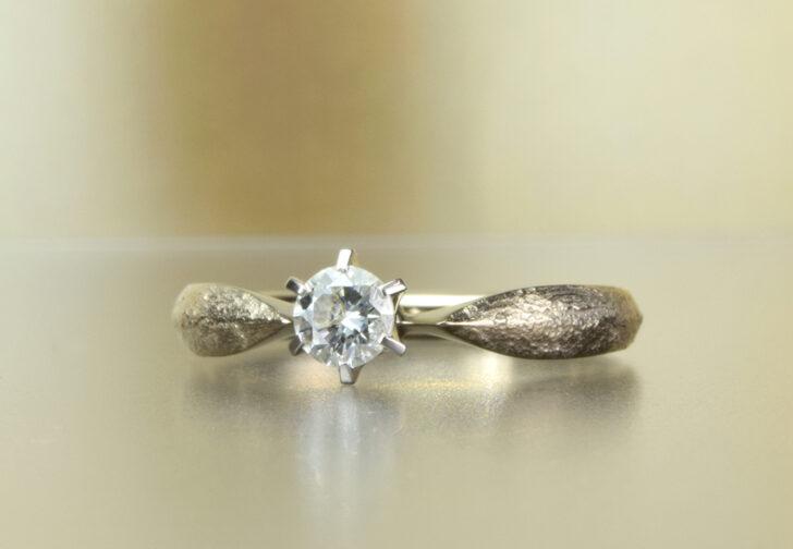 プラチナ婚約指輪|羽根のようなテクスチュアが柔らかい印象...
