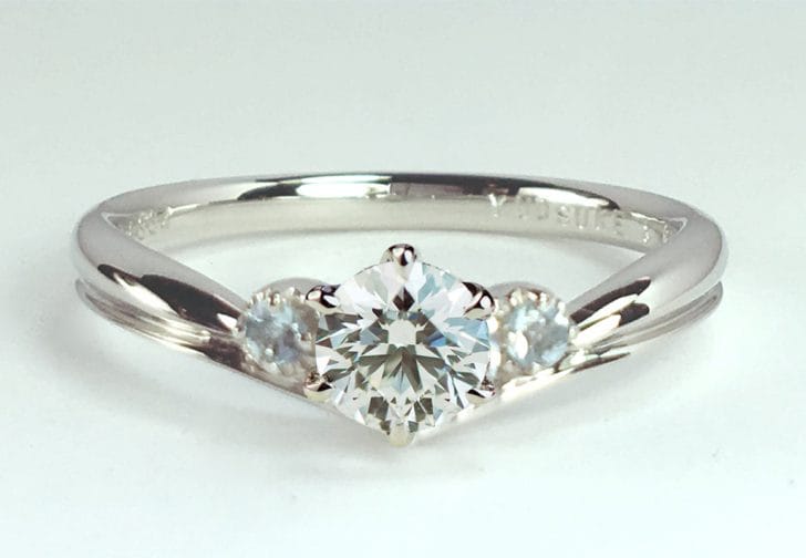 プラチナ製誕生石婚約指輪(エンゲージリング)3月生まれア...