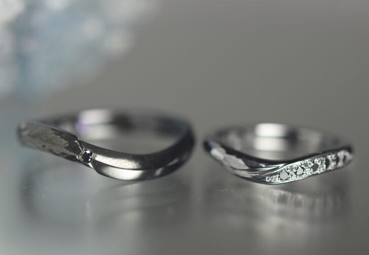 ブラックジルコニウム結婚指輪|水面のように光り輝く「さざ...