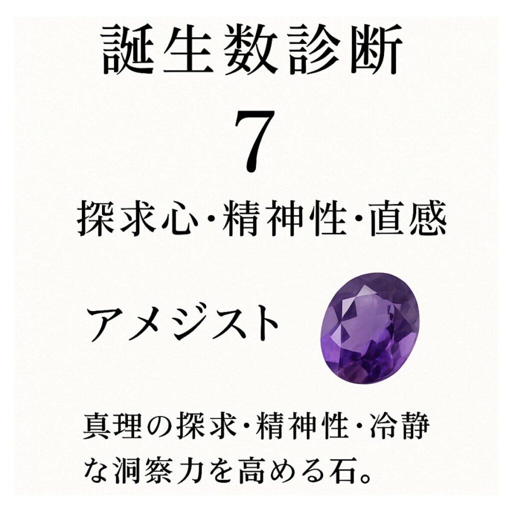 運命数7の使命と対応石が描かれたカード アメジスト・タンザナイト