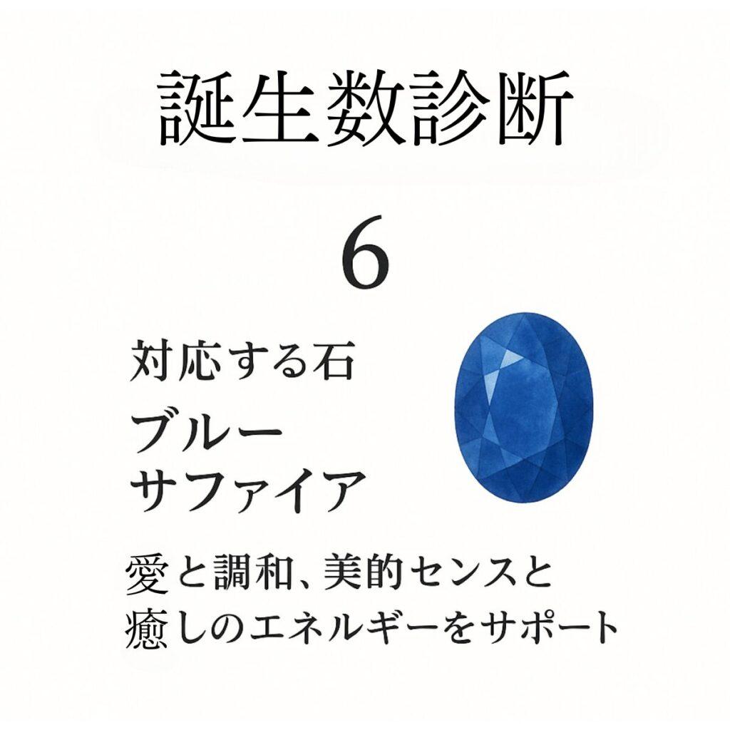 運命数6の使命と対応石が描かれたカード ブルーサファイア