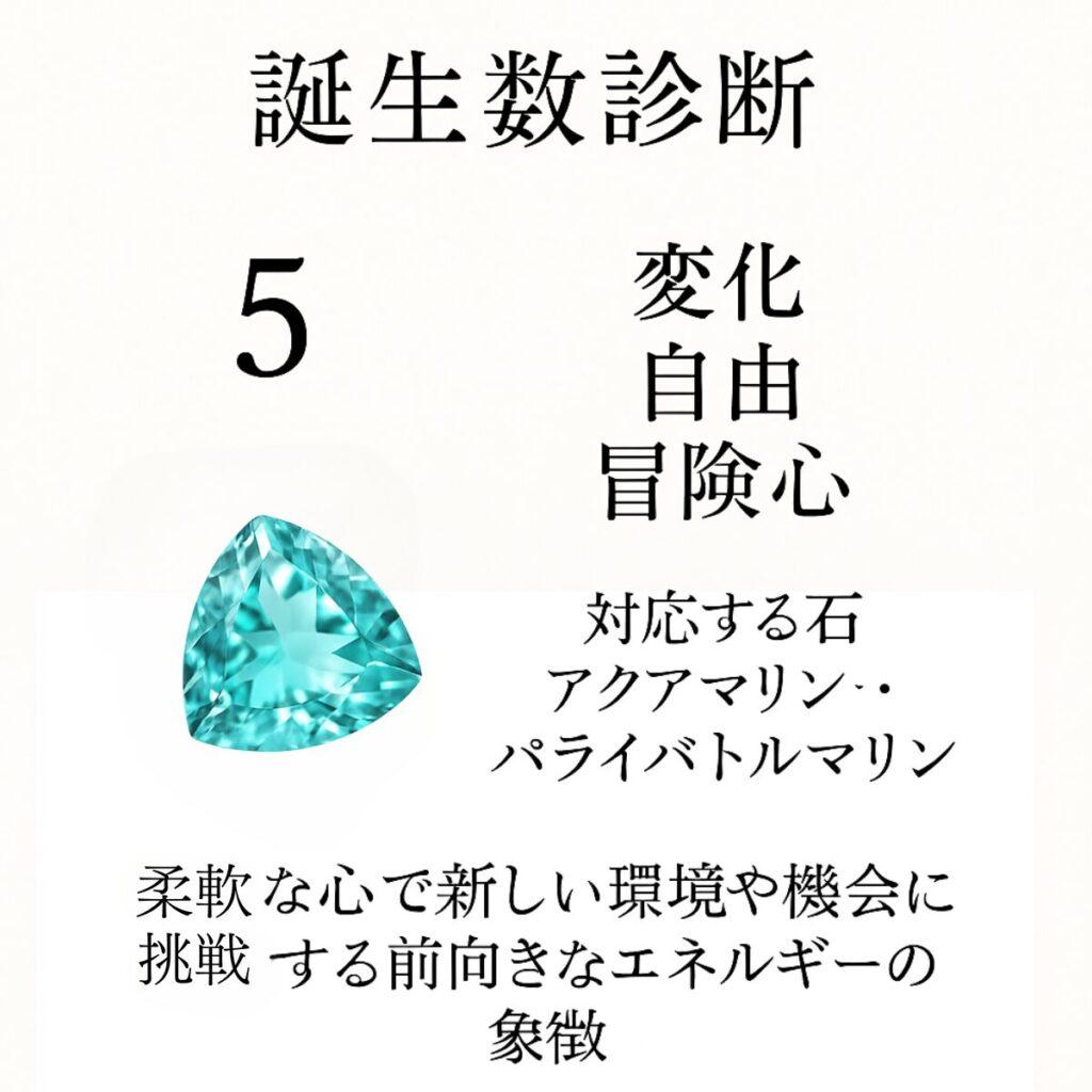 運命数5の使命と対応石が描かれたカード ブルートパーズ・パライアバトルマリン