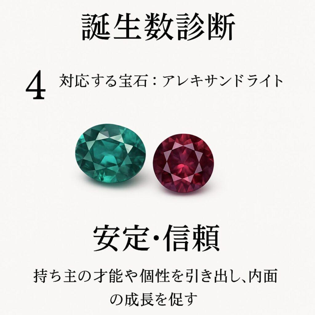運命数4の使命と対応石が描かれたカード アレキサンドライト