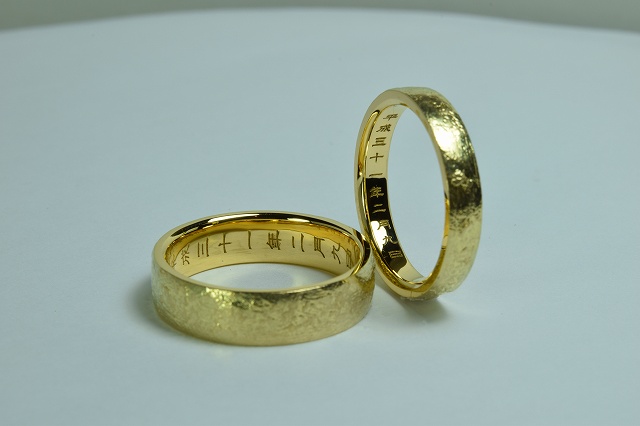 リングの内側に漢字で縦書きでレーザー刻印をしました。