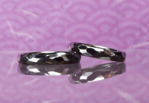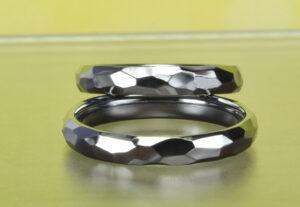 チタン・ジルコニウム、タンタルやハフニウムにも、プラチナやゴールド地金のリングと同じようにつち目仕上げが可能です。