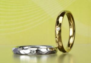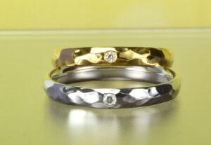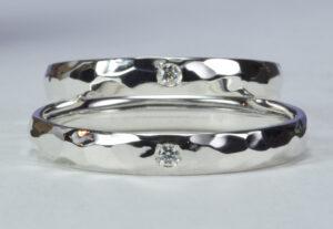 このマリッジリングのように、切り返しの部分など細かい模様にも対応できるのが、<たがねつち目>という方法の特徴です。