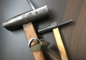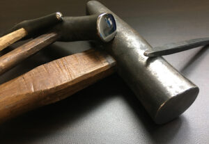 先端が平らな鎚(つち)で、行うため、表面に丸みがあるときれいに平行な跡が付きません。