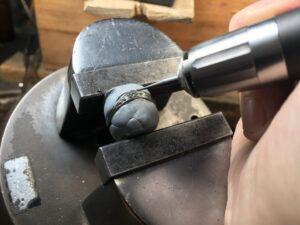 「ナナコタガネ」と呼ばれる先端が丸く凹状にくぼんだたがねで、