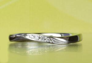 結婚指輪と同じくダイヤが並んだエンゲージリング&マリッジリングが作れる。