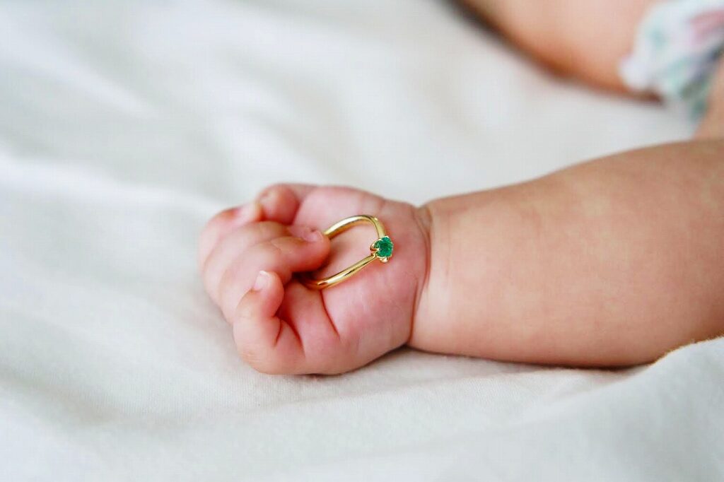 【K18 5月誕生石エメラルドの指輪】赤ちゃんが出来た記念に!