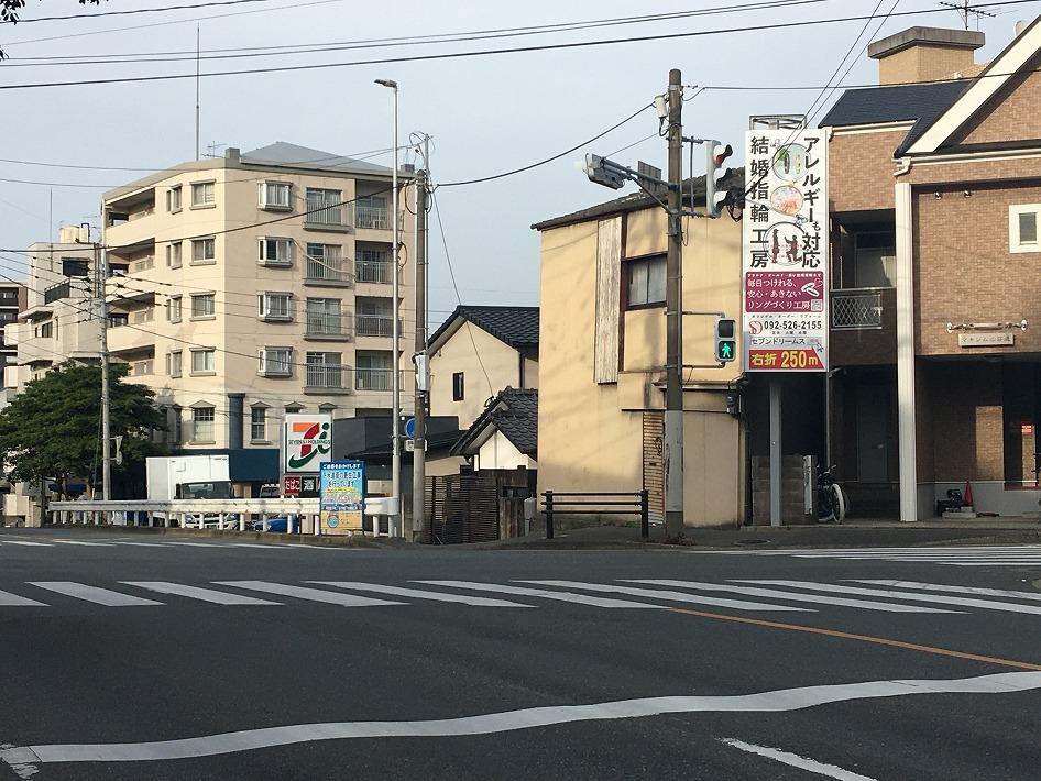 設置場所は、高級スーパーのマキーの斜め前あたりです。筑肥新道で、ちょうど平和の交差点です。