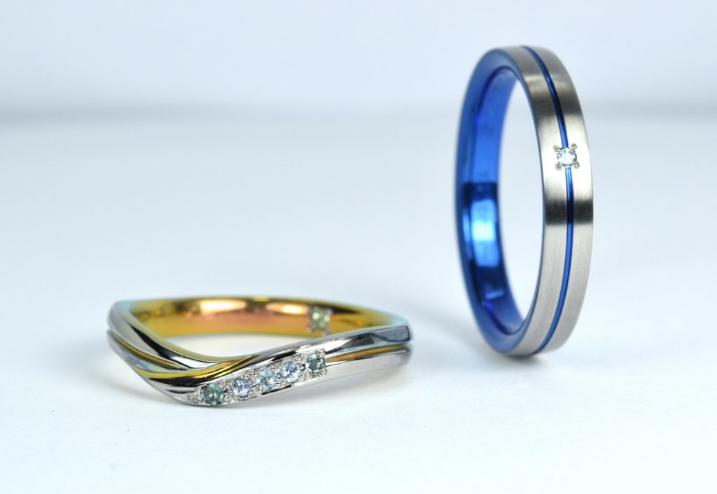 その後、手作業での指輪の研磨からカラーリング(陽極酸化)までを