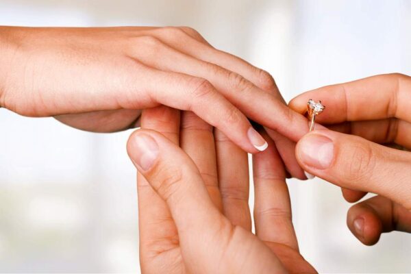 指輪の両端が凹になっていて真ん中に光が走ります。太陽に照らされて輝く道が現れたり