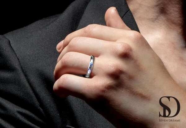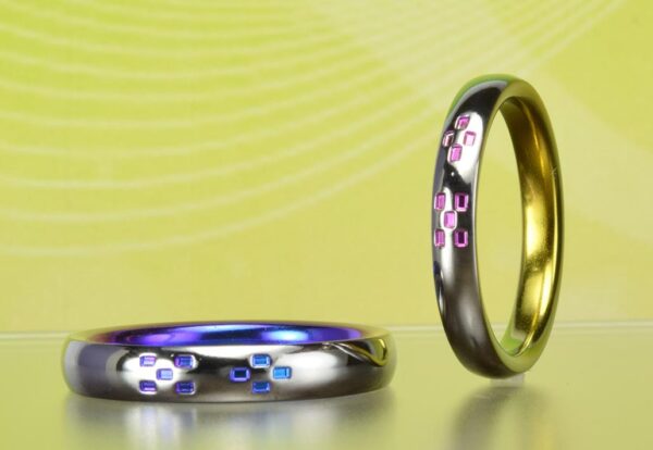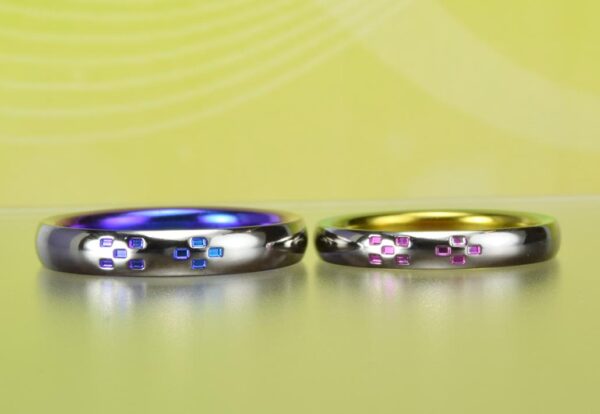 絆が永遠であるようにという願いが込められた沖縄の伝統文様<ミンサー>を結婚指輪に。