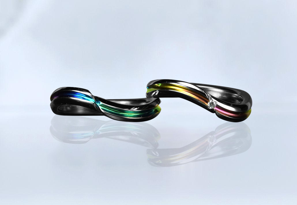 タイトルが表す調和が開く新しい世界をモチーフにしたマリッジリングです。