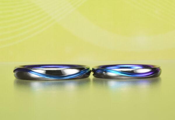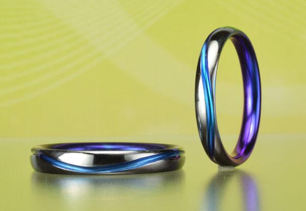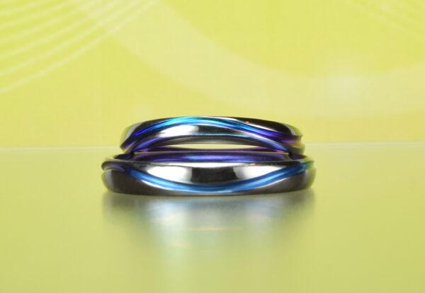 リング表面に広く細く・・・波打つラインを美しいブルーで染め上げました。