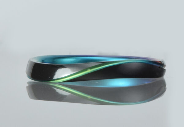 グラデーションの美しい変化もあり、細身のリングながら見る目に強いインパクトを残します。