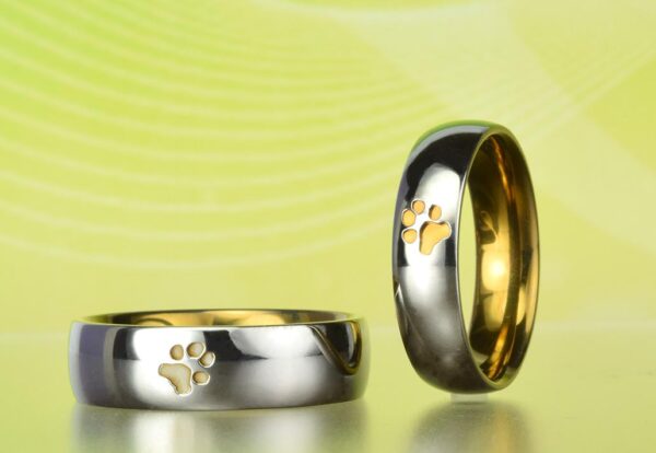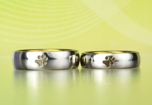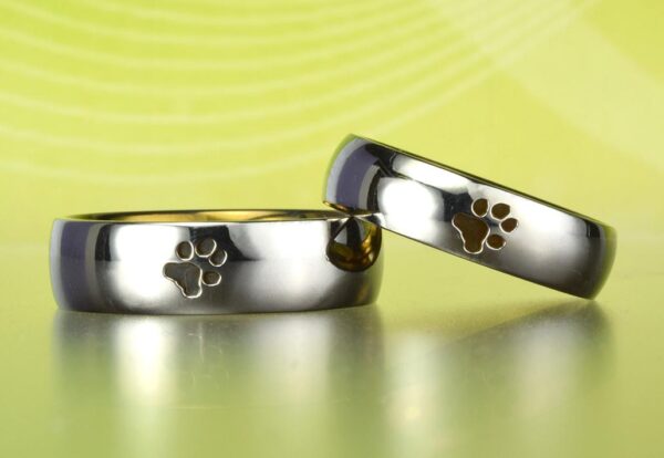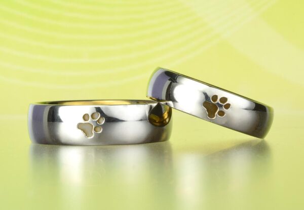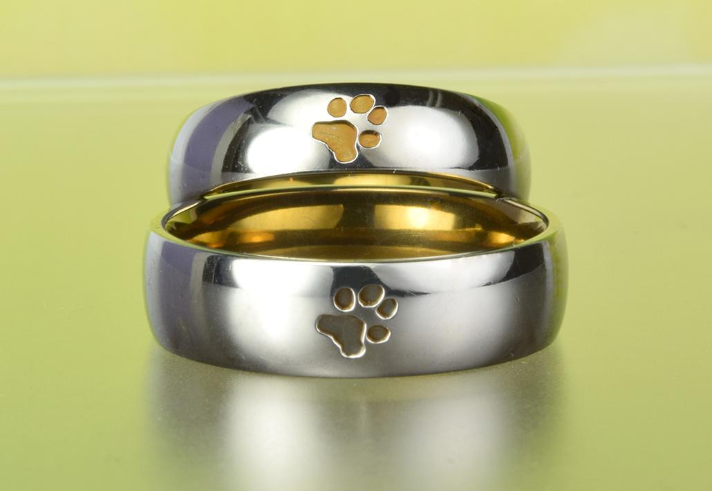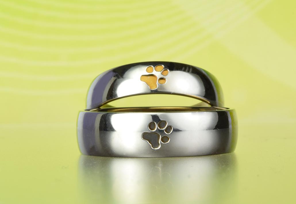 愛犬や愛猫の肉球が斜めに入っているのが可愛い指輪です。