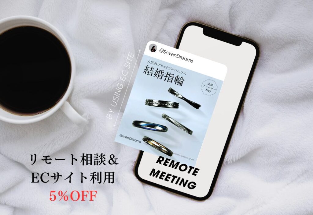 金属アレルギー対応の豊富な素材や黒い指輪など、多彩なデザインを取り揃えております。全国どこからでもオーダー可能で、リモート相談&EC購入なら5%割引特典付き。来店不要で指輪選びがご覧いただけます。